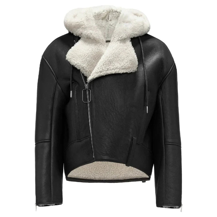 Ivenza Hooded Fur Shearling Leather Biker Jacket