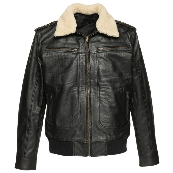 Men's Black Alaric Shearling Collar Bomber Jacket