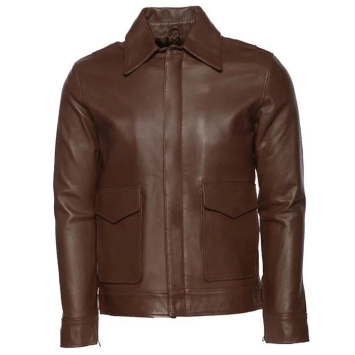 Men's Classic Shirt Collar Leather Bomber Jacket
