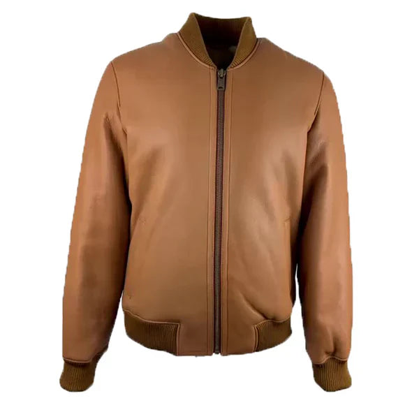 This casual Tan Bomber Leather Jacket is all about understated elegance and comfort for a modern...