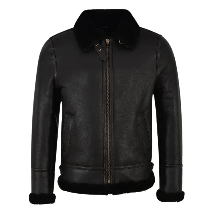 Fly high above winter's grasp with the all black B3 Shearling Bomber Leather Jacket, your...
