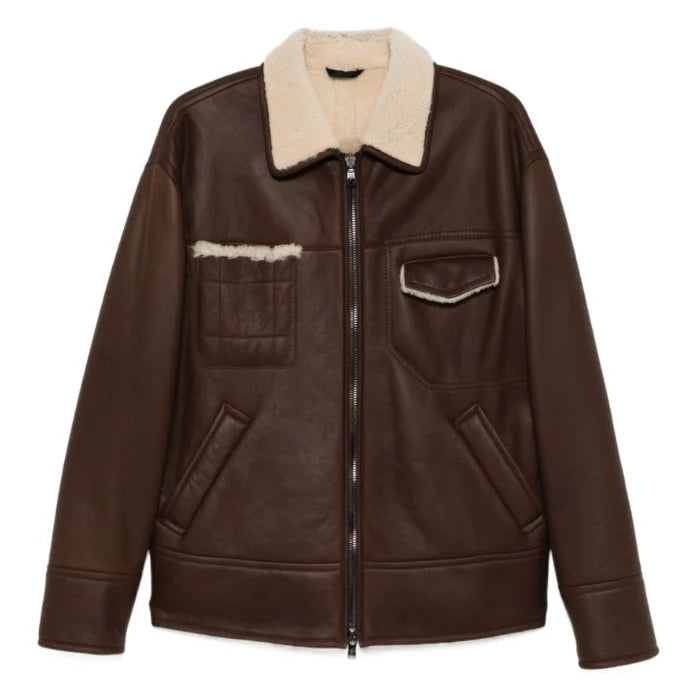As comforting as a warm whisper. This ferrari luxurious brown shearling leather jacket cocoons you...