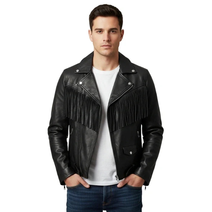 Fringe, rider-ready design, dramatic leather, and attitude collide in the Shadow Trail Fringe Biker Leather...