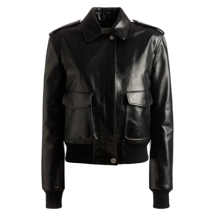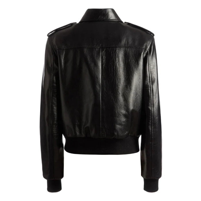 Vespera Cargo-Pockets Leather Bomber Jacket