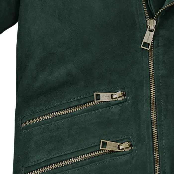 Frontier Timber Green Suede Biker-Style Moto Jacket