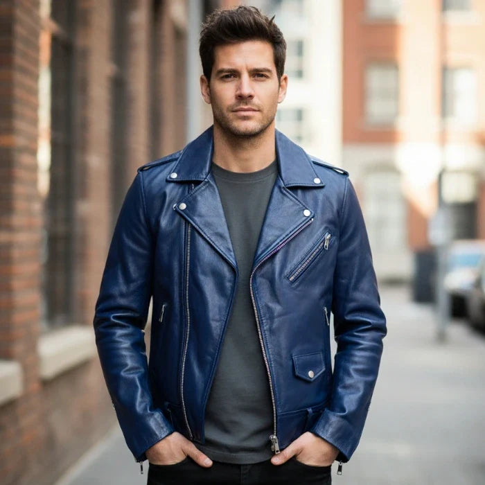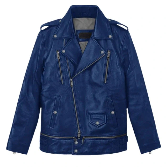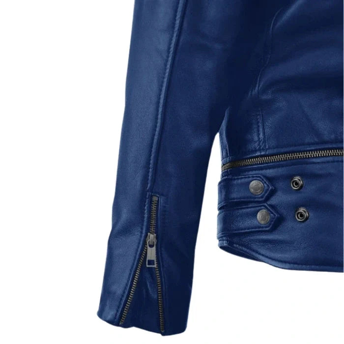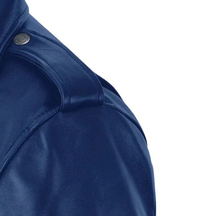 Rich Blue Trooper Biker Leather Jacket