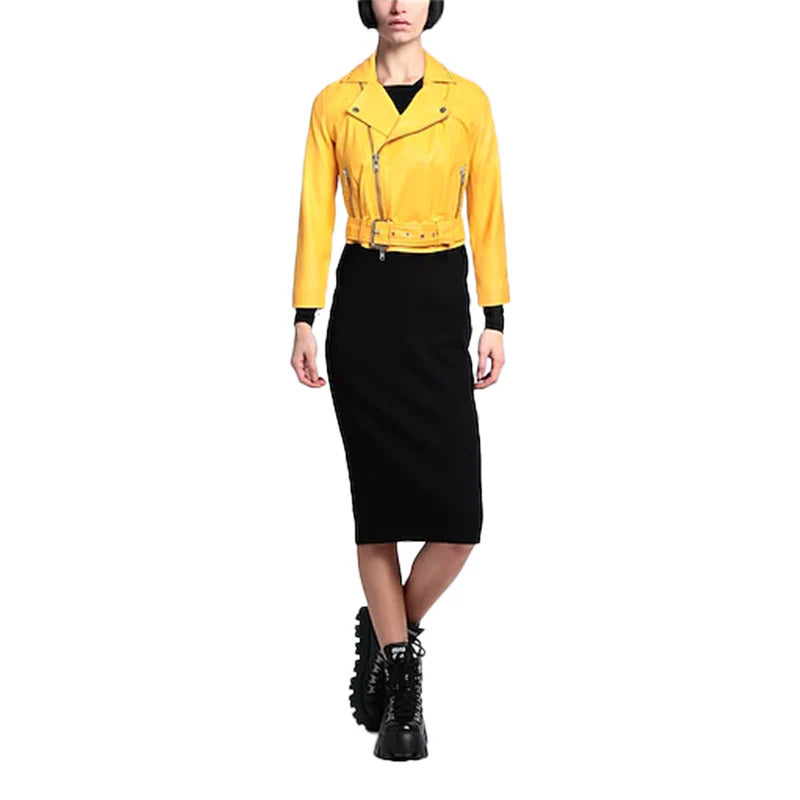 The Women's Sword Crop Biker Leather Jacket is a bold fusion of modern style and edgy attitude. Made from premium lambskin leather, it features a cropped silhouette, zippered pockets, and sleek lines for a striking look. Designed for trendsetters, this moto leather jacket women adds a rebellious yet sophisticated touch to any outfit.